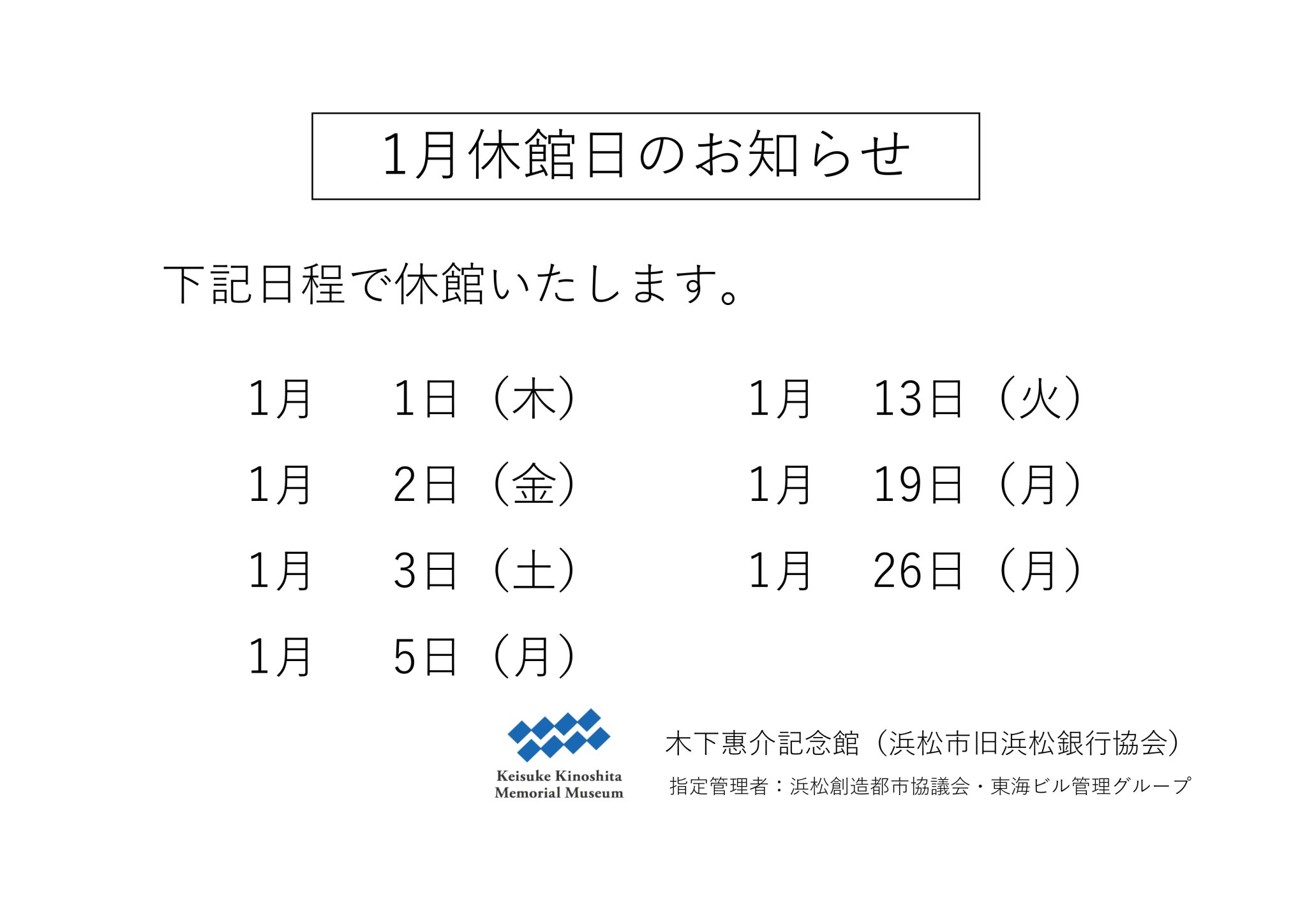 【1月休館日のお知らせ】 下記日程で休館いたします。 1月1日(木)1月2日(金)1月3日(土)1月5日(月)1月13日(火)1 […]